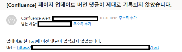 이제 Listener를 등록해 놨으니 버전 댓글 없이 업데이트 시 아래처럼 메일이 오게 됩니다.