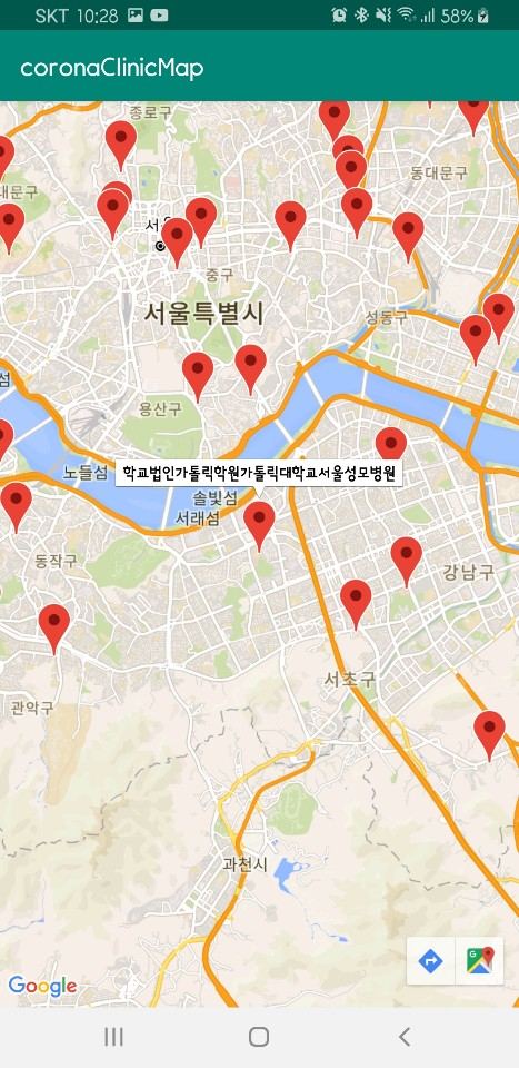 현재 아래 코드는 clinic 객체 개수만큼의 마커를 찍고 있습니다.