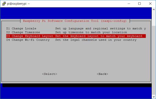 다음으로 키보드 레이아웃 설정이다. 처음화면에서 4. Localisation Option을 선택한 후 I3. Change Keyboard Layout을 선택한다.